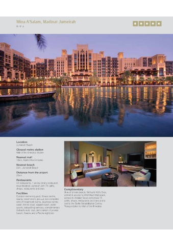 – sports, babysitting services, complimentary Transportation to Mall of the Emirates