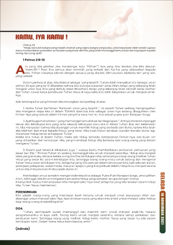 kita mengenai siapa kita di dalam TUHAN. Identitas kita sebagai umat-Nya sedang diteguhkan oleh