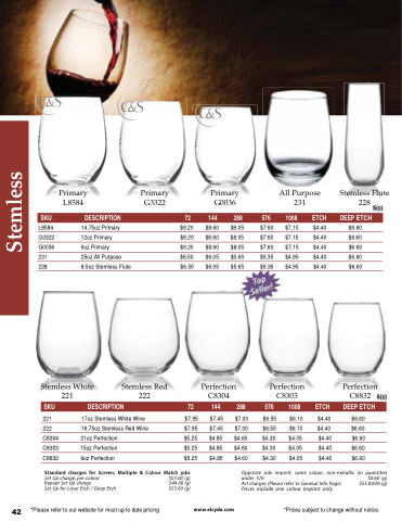 Art charges (Please refer to General Info Page) Prices include one colour imprint only.