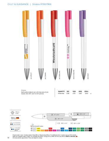 Refill color available in Blue or Black. For upgraded refill options, see pg 479 for details. All Pens and refills are Made in Germany 52 All measurements approximate. Prices are subject to change.