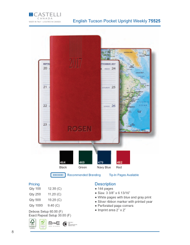 ● White pages with blue and gray print ● Silver ribbon marker with printed year ● Perforated page corners