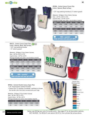 B9206 - Cotton Canvas Promo Tote Colors: Natural, Black & Navy