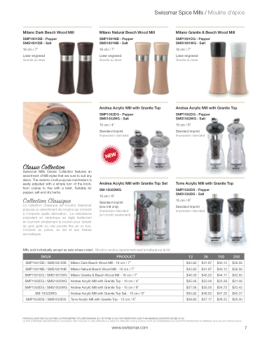 Swissmar Mills Classic Collection features an assortment of Mill styles that are sure to suit any décor. The ceramic multi-purpose mechanism is easily adjusted with a simple turn of the knob, from coarse to ne with a twist. Suitable for pepper, salt and dry herbs.