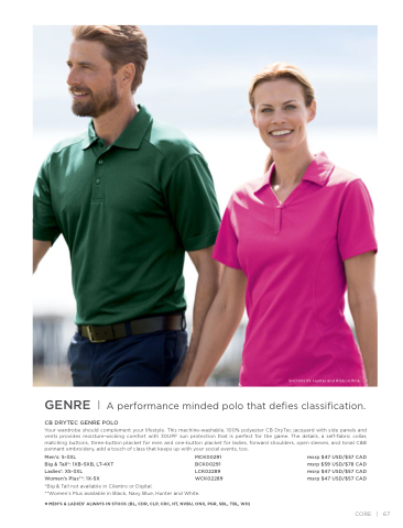 GENRE | A performance minded polo that de de es classi cation CB DRYTEC GENRE POLO