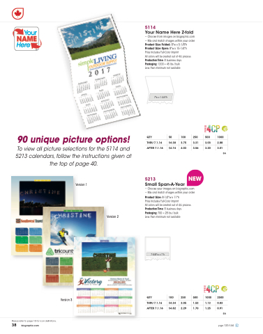 To view all picture selections for the 5114 and 5213 calendars, follow the instructions given at the top of page 40.