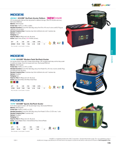 KOOZIE® is a registered trademark of BIC Corporation. General Information page 776. Icon de nitions page 4. CAD $ Additional charges, speci cations and lead times may apply for optional decoration methods and locations. Visit bicgraphic.com.