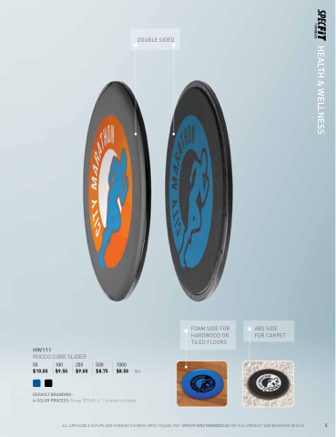 ALL APPLICABLE SETUPS AND RUNNING CHARGES APPLY. PLEASE VISIT SPECFIT.SPECTORANDCO.CA FOR FULL PRODUCT AND BRANDING DETAILS. 5