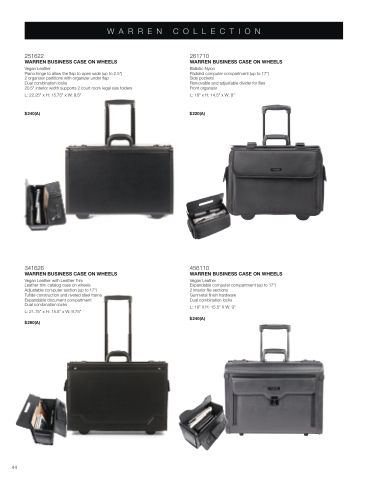 (up to 17") Tu de construction and and riveted steel frame Expandable document compartment Dual combination locks