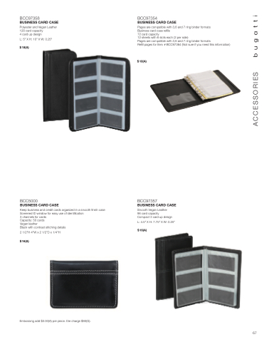 Embossing add $2 00(A) per piece Die charge $80(G) ACCESSORIES