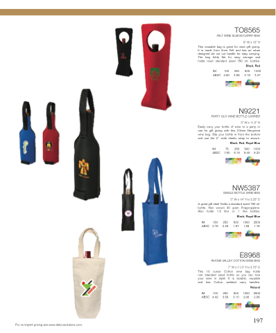 A great gift idea! Holds a standard sized 750 ml. bottle. Non woven 90 gram Polypropylene. Also holds 1.5 litre or 1 litre bottles.