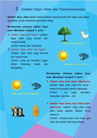Contoh: hewan dan tumbuhan Sumber daya alam hayati