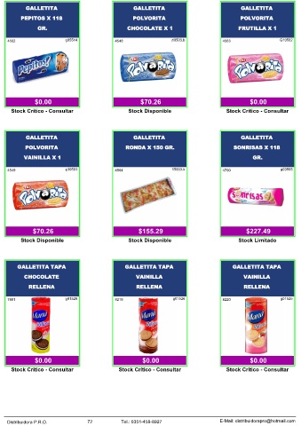 Distribuidora P.R.O. 72 Tel.: 0351-458-8927 E-Mail: distribuidorapro@hotmail.com