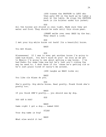 (GUS tosses the SHOTGUN to LEVI who then pats GUS on the back as he takes a seat at the table. He slips the SHOTGUN back in its holster under his jacket)