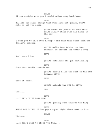 (LEVI cocks his pistol as does BASS. SILAS slowly stand with his hands in the air)
