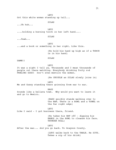 (LEVI walks back to the TABLE. He SITS. Takes a sip of his drink)