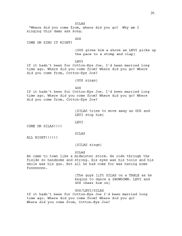 (GUS gives him a shove as LEVI picks up the pace to a stomp and clap)