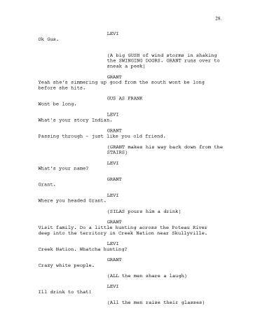 (A big GUSH of wind storms in shaking the SWINGING DOORS. GRANT runs over to sneak a peek)