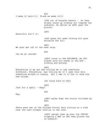 (LEVI turns to the AUDIENCE. As GUS stands with his hands in the AIR - rocking and moving)