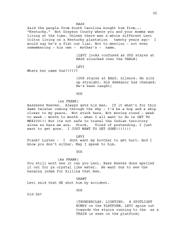 You still wont see it can you Levi. Bass Reeves done spelled it out for ya crystal like water. He want Gus to see the hanging judge for killing that man.