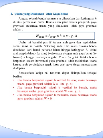 gravitasi.  Besarnya  usaha  yang  dilakukan                 oleh  gaya  gravitasi