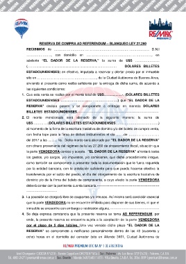 adelante “EL DADOR DE LA RESERVA,” la suma de U$S ………………….