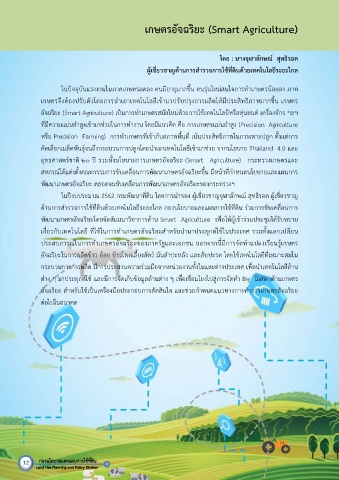 อัจฉริยะ (Smart Agriculture) เปนการทําเกษตรสมัยใหมดวยการใชเทคโนโลยีหรือหุนยนต เครื่องจักร ฯลฯ