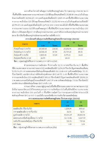 ทางกายภาพเล็กนอย (S3) ผลผลิตเฉลี่ยตอไร 892.62 กิโลกรัมตอไร มีมูลคาผลผลิตเฉลี่ยตอไร 28,840.55