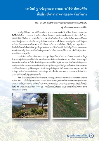 ขางตนจึงมีความจําเปนตองจัดทําฐานขอมูลและรางแผนการใชประโยชนที่ดินในพื้นที่ศูนยโครงการหลวงเลอตอ