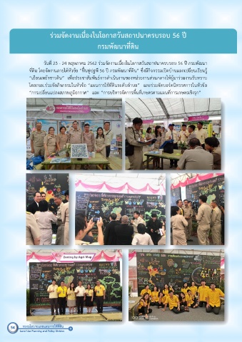 ที่ดิน โดยจัดงานภายใตหัวขอ “ฟนฟูปฐพี 56 ป กรมพัฒนาที่ดิน” ซึ่งมีกิจกรรมเปดบานแลกเปลี่ยนเรียนรู