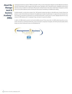 About the The Management & Business Academy (MBA) was founded in 2005 as an educational program designed to provide independent optometrists