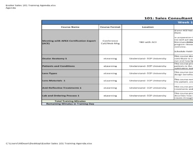Essilor Sales 101 Training Agenda.xlsx