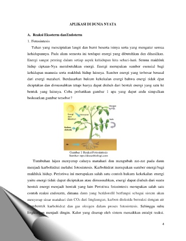 contoh reaksi endoterm, dimana daun yang berklorofil berfungsi sebagai sistem akan