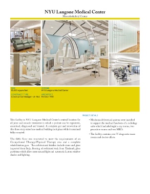 Th is facility is NYU Langone Medical Center’s central location for • Mechanical/electrical systems were installed