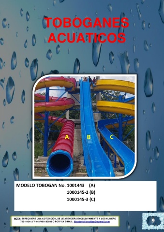 TOBOGANES ACUATICOS A B C MODELO TOBOGAN No. 1001443 (A) 1000145-2 (B) 1000145-3 (C) 9