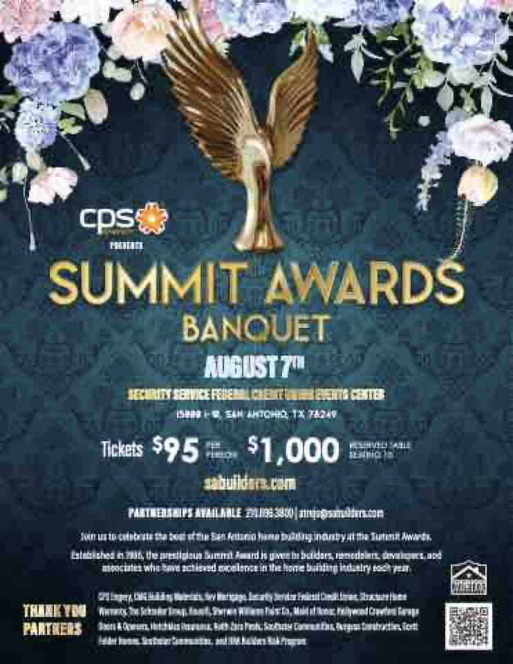 SUMMIT AWARDS Banquet Tickets 15000 I-10, San Antonio, TX 78249 $95PER PERSON $1,000RESERVED TABLE SEATING 10 sabuilders.com