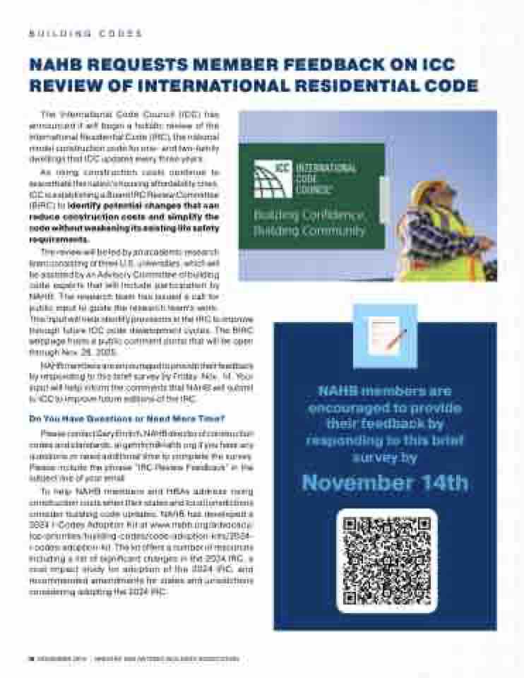 NAHB REQUESTS MEMBER FEEDBACK ON ICC