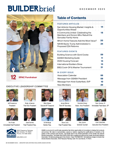 4 DECEMBER 2025 | GREATER SAN ANTONIO BUILDERS ASSOCIATION