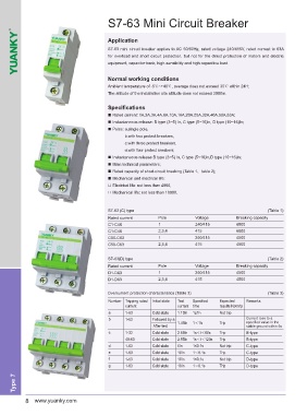 S7-63 mini circuit breaker applies to AC 50/60Hz, rated voltage 240/415V, rated current to 63A