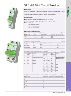 S7Ⅰ-63 mini circuit breaker is used in AC 50/60Hz, rated voltage 240/415V, rated current to 63A for