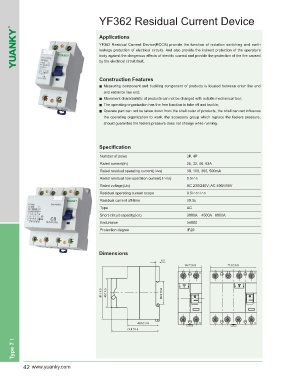 YF362 Residual Current Device(RCCB) provide the function of isolation switching and earth