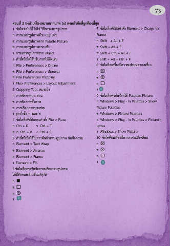 4. ข้อใดคือคีย์ลัดของค าสั่ง File > Place ค. Windows > Plug - in Palettes > Picturein