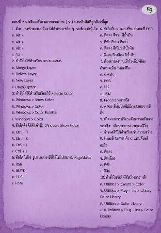 5. ข้อใด ไม่ใช่ รูปแบบของสีที่ใช้ในโปรแกรม PageMaker ข. สีเหลือง