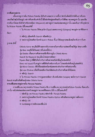 เนื่องจากรูปภาพใน Picture Palette มีเป็นจ านวนมาก บางครั้งเราจ าเป็นต้องใช้ ค าสั่งในการค้นหา
