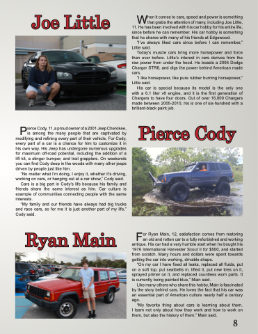 “My favorite thing about cars is learning about them. I learn not only about how they work and how to work on them, but also the history of them,” Main said. 8