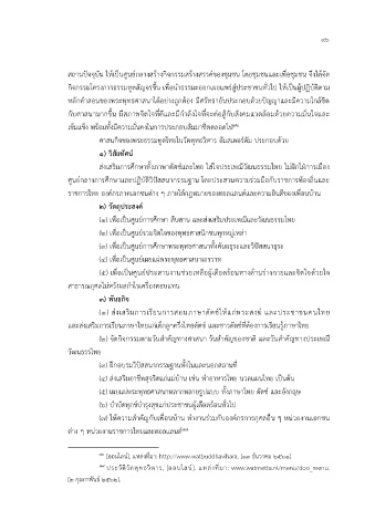 (๑) เพื่อเป็นศูนย์การศึกษา สืบสาน และส่งเสริมประเพณีและวัฒนธรรมไทย