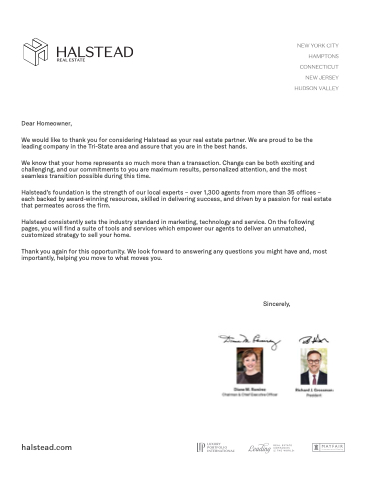 We would like to thank you for considering Halstead as your real estate partner. We are proud to be the leading company in the Tri-State area and assure that you are in the best hands.