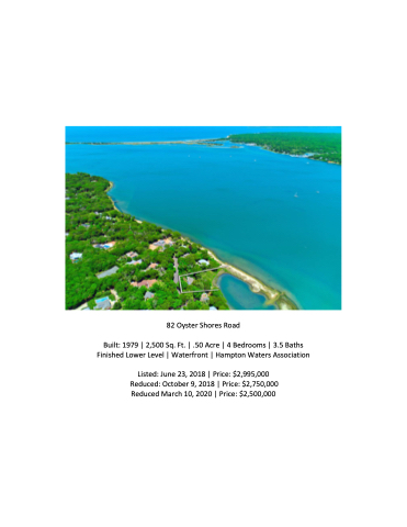 Listed: June 23, 2018 | Price: $2,995,000 Reduced: October 9, 2018 | Price: $2,750,000 Reduced March 10, 2020 | Price: $2,500,000