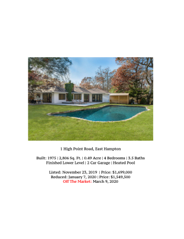 Listed: November 23, 2019 | Price: $1,699,000 Reduced: January 7, 2020 | Price: $1,549,500 Off The Market: March 9, 2020