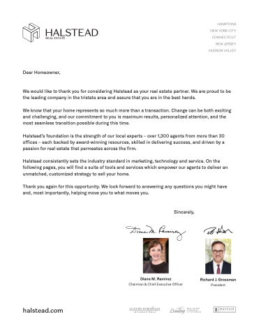 We would like to thank you for considering Halstead as your real estate partner. We are proud to be the leading company in the tristate area and assure that you are in the best hands.