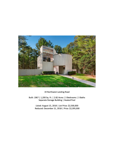 Listed: August 15, 2018 | List Price: $2,500,000 Reduced: December 21, 2018 | Price: $2,395,000
